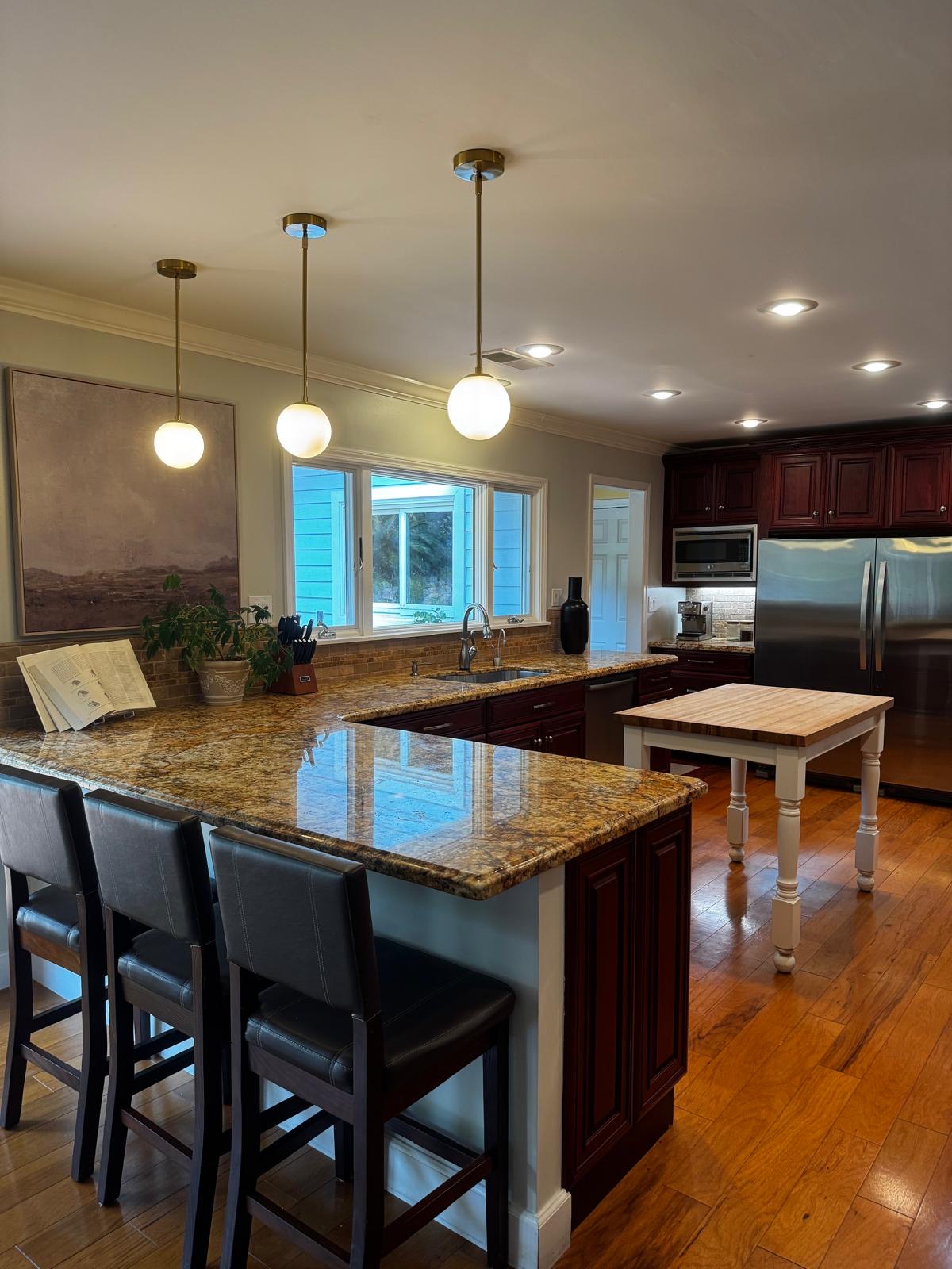 Step inside to discover a spacious and thoughtfully laid-out interior featuring two inviting living areas ideal for family gatherings and everyday living. The heart of the home is the stylishly redesigned kitchen, fitted with sleek cabinetry, premium quartz countertops, a large island, and modern high-end appliances — perfect for both everyday meals and entertaining.