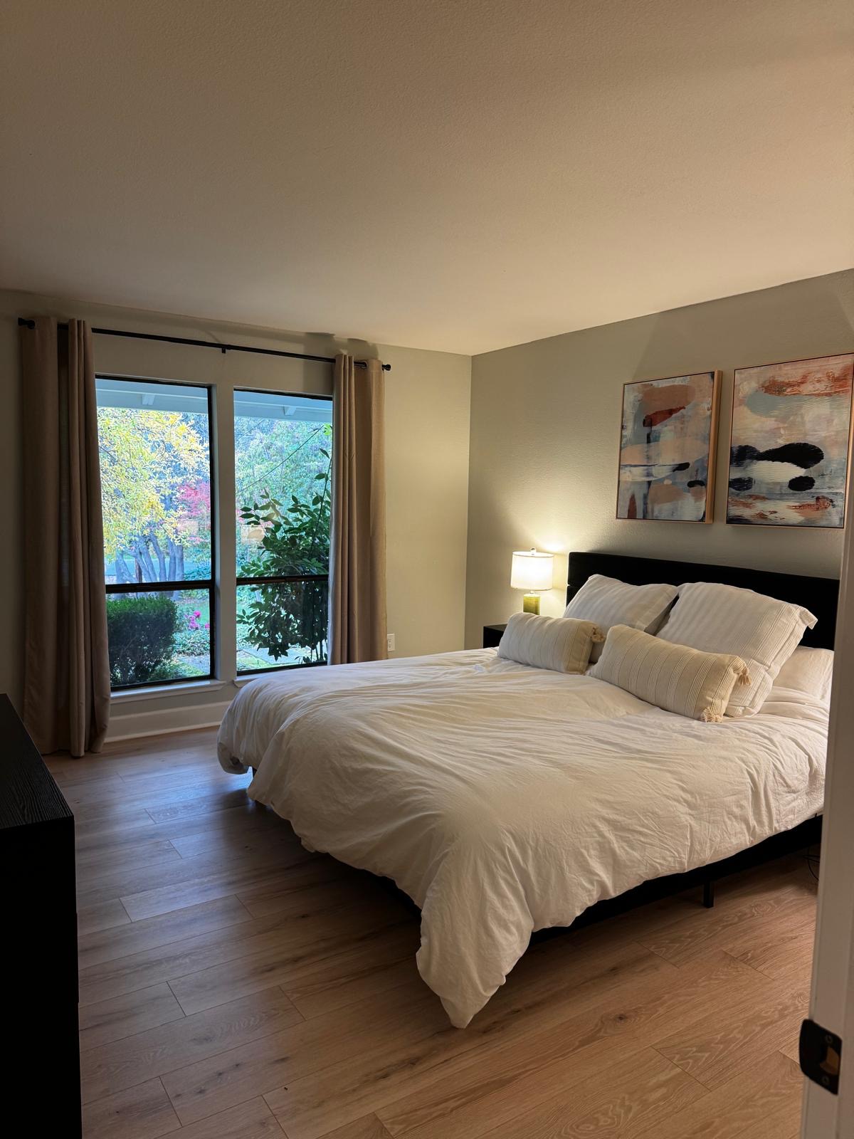 The main-level primary suite offers a bright and peaceful retreat with generous closet space and easy access to the outdoor areas. A versatile downstairs or secondary living space adds flexibility — great as a guest suite, home office, playroom, or potential private living area.