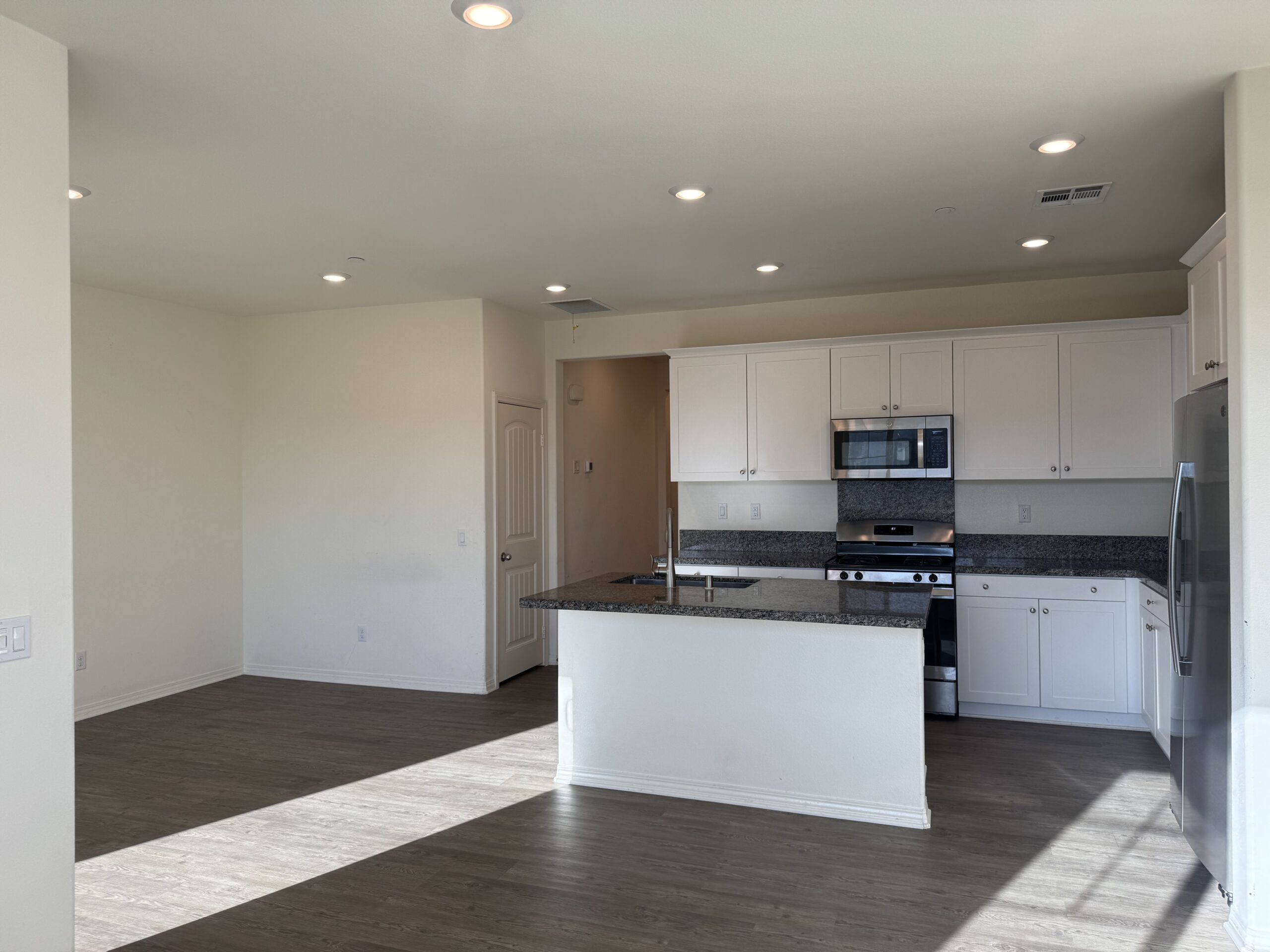 2 ensuites!, 1 up, 1 down! Downstairs ensuite has a kitchenette. Downstairs is the entrance to and from the garage, and a separate laundry room (washer/dryer included). Upstairs has the beautiful open kitchen with a cozy living room off the kitchen, dining room and balcony off the dining area. Great for entertaining! There is a guest bathroom in the hallway. The upstairs ensuite has a massive bathroom area and closet!